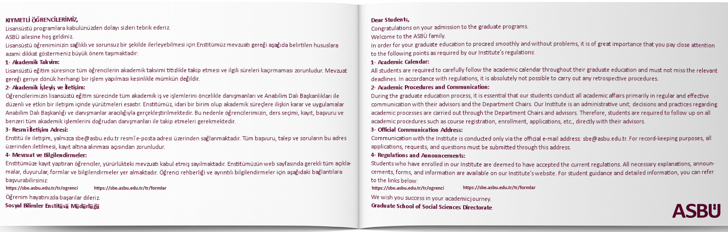 Duyurular Tümü 17 Aralık 2025-2026 Bahar Yarıyılı Lisansüstü Öğrenci Alımı Ön Değerlendirme Sonuçları ve Bilimsel Değerlendirme Sınav Tarihleri 26 Kasım 2025-2026 Bahar Dönemi Lisansüstü Öğrenci Alımı 20 Kasım 2025-2026 Güz Dönemi Doktora Yeterlik Sınav Tarihleri Hakkında Etkinlikler Tümü 19 Aralık 22-26 Aralık 2025 Haftası Tez Savunma Sınavları 12 Aralık 15-19 Aralık 2025 Haftası Tez Savunma Sınavları 28 Kasım 01-05 Aralık 2025 Haftası Tez Savunma Sınavları Haberler Tümü 07 Nisan Anabilim Dalı İrtibat Sorumluları Toplantısı 24 Şubat Lisansüstü Danışmanlar Bilgilendirme Toplantısı 17 Şubat Akademik ve İdari Sorularınız